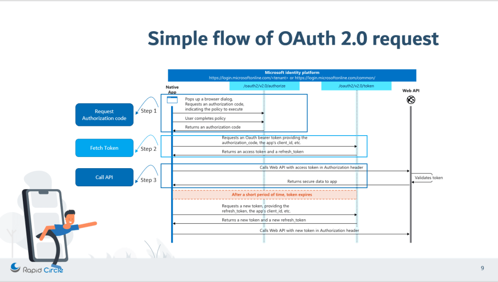 To authenticate a user with Azure AD application OAuth flow is used. We will be exploring OAuth 2.0 authorization code grant flow in this blog post. You can find the most authentic information about OAuth protocol here.